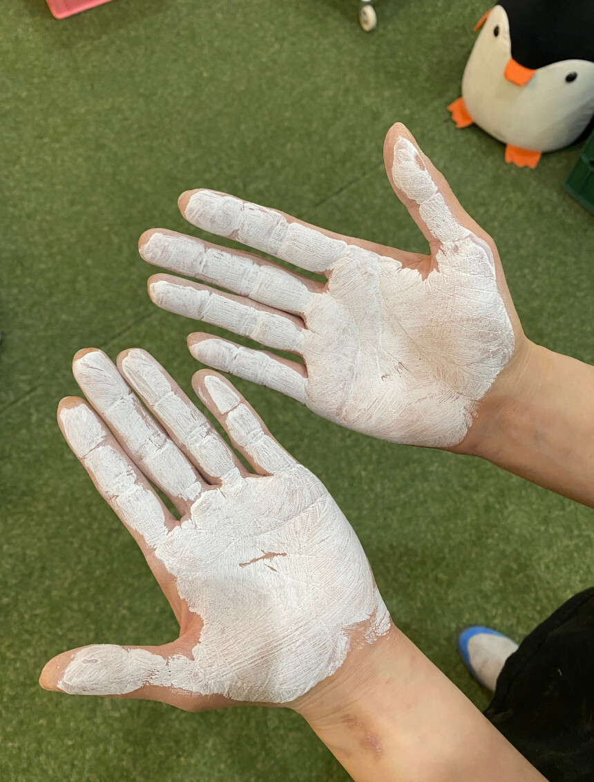 로션 바르듯이 손바닥에 얇게 펴바릅니다.