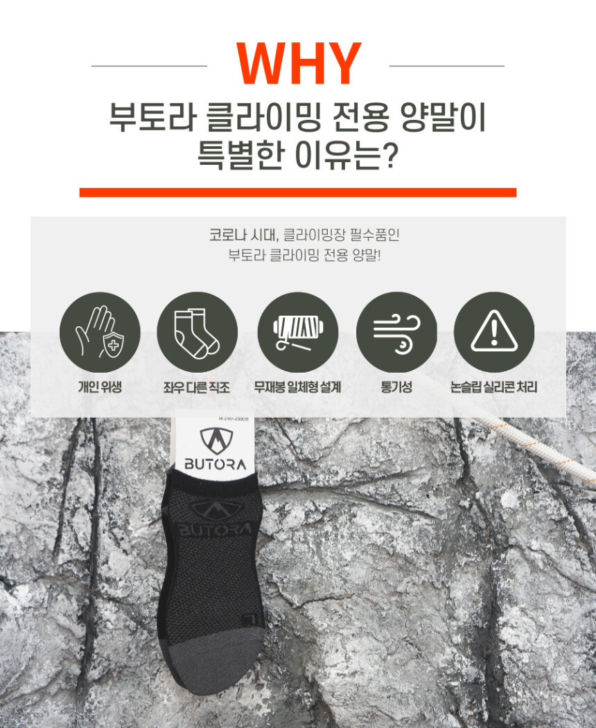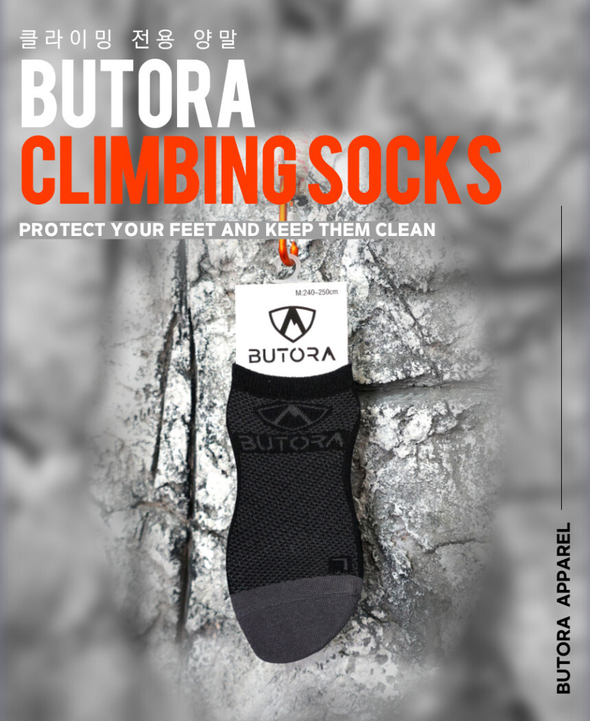 양말을 신고 암벽화 신으시는 분들에게 추천드리는 부토라에서 제작한 클라이밍 전용 양말입니다.