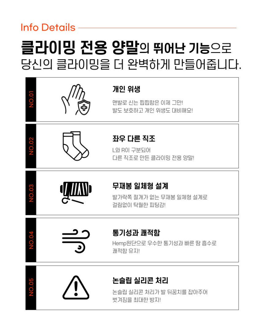 좌우 모양을 다르게 제작하여서 암벽화 안에서 양말이 돌아가거나 하지 않습니다.
