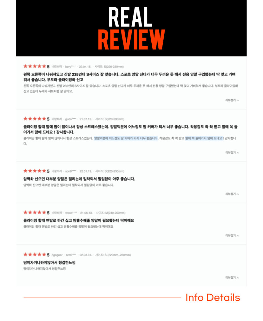 발에 땀이 많이 나서 암벽화에서 냄새가 많이 나시는 분들은 양말 착용을 추천드립니다.