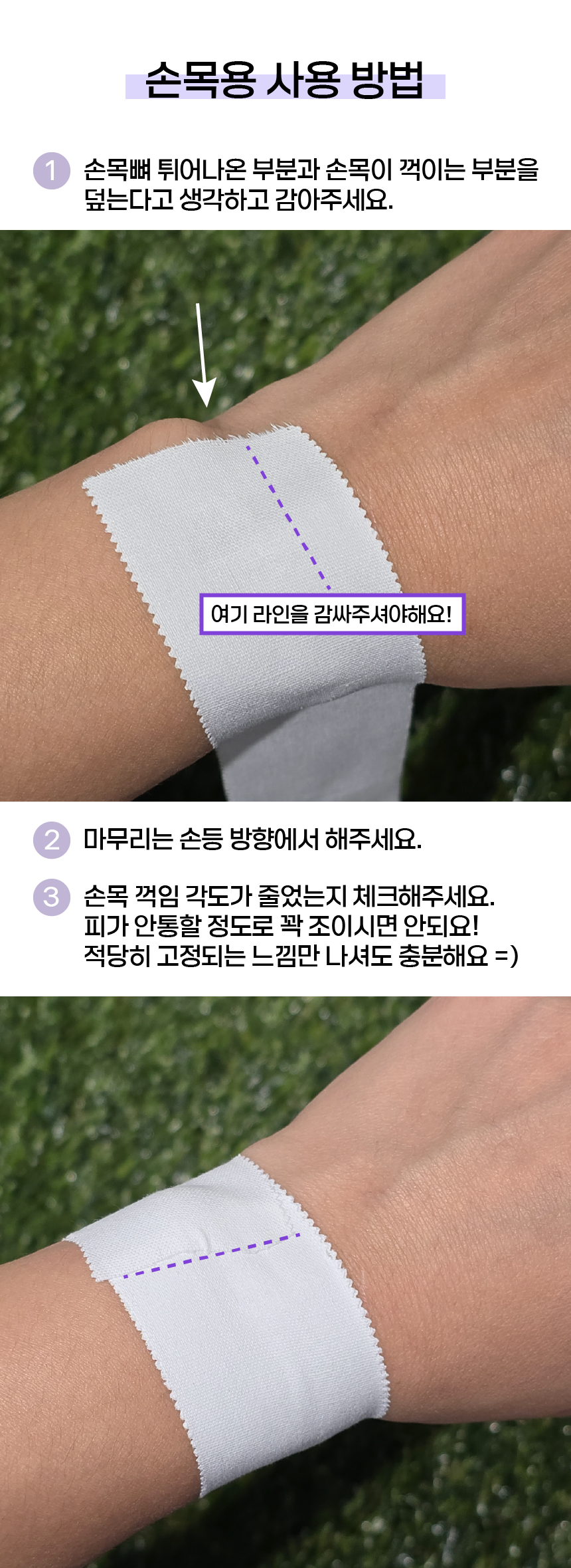 손목용을 3등분 또는 본인의 손가락 마디에 맞춰서 잘라서 사용하셔도 됩니다! (이럴 경우 손가락용 사용하시는거보다 가성비가 좋습니다 ^^)