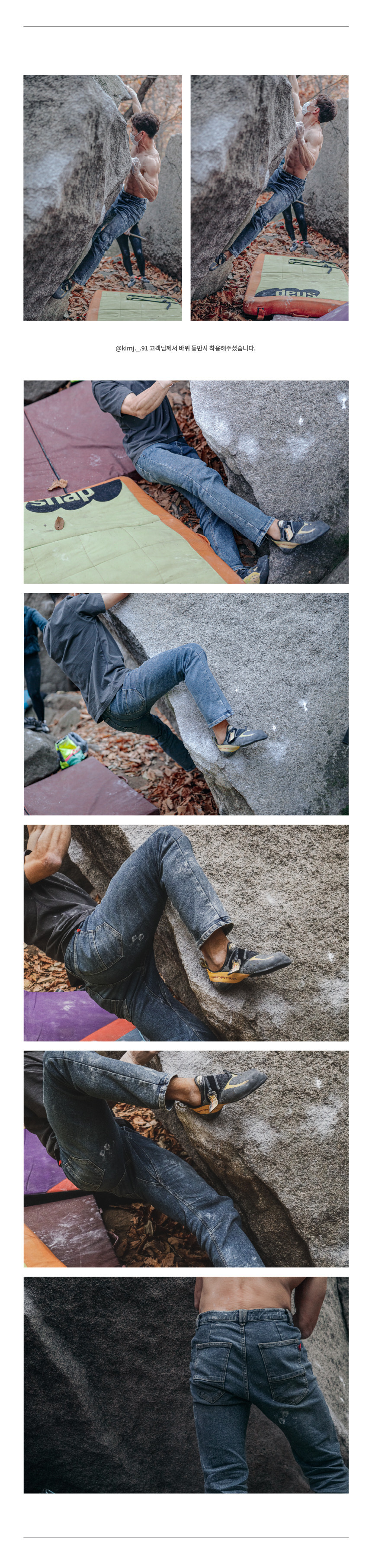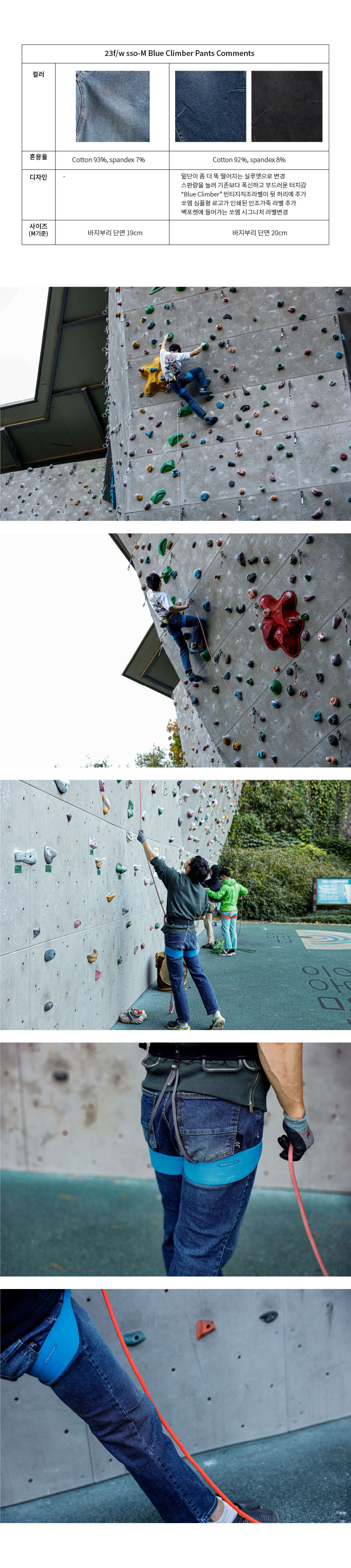 쏘엠에서 제작한 클라이밍 청바지로