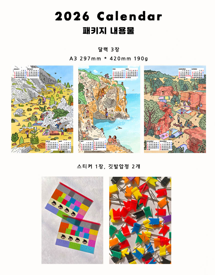 📅 1set = 달력 3장 + 스티커 + 핀2개 (핀 색상 랜덤 증정)